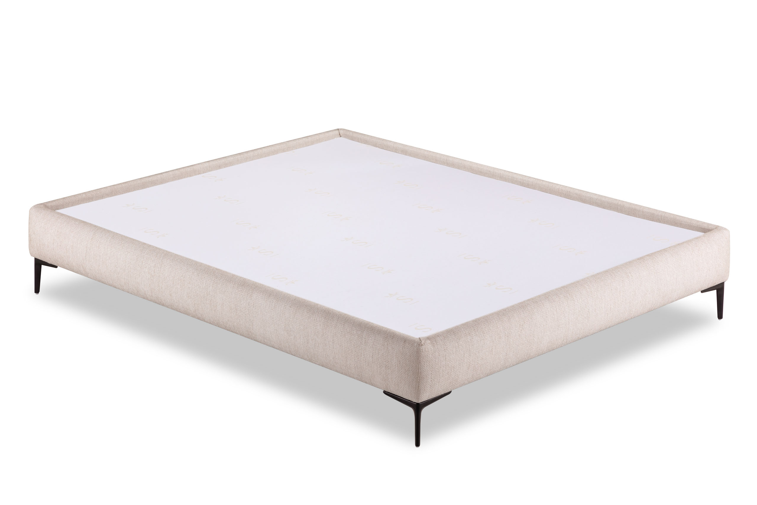 FRAME _ Made of 14 x 2,5 cm solid wood. Finished according to the fabrics. SLEEP SURFACE _ Designed with separated vertical wood slats that improve transpiration, reinforced with laminated wood crossbeams and padding. The sleep surface is located below the frame and has the same measurement as the mattress. Upper finish with Microclimate fiber and 100% cotton fabric with the Smattex logo at the top. LEGS (not included) _ 4 legs are necessary for individual sizes and 5 for double base in one piece. TOTAL HEIGHT WITHOUT LEGS _ 14 cm.